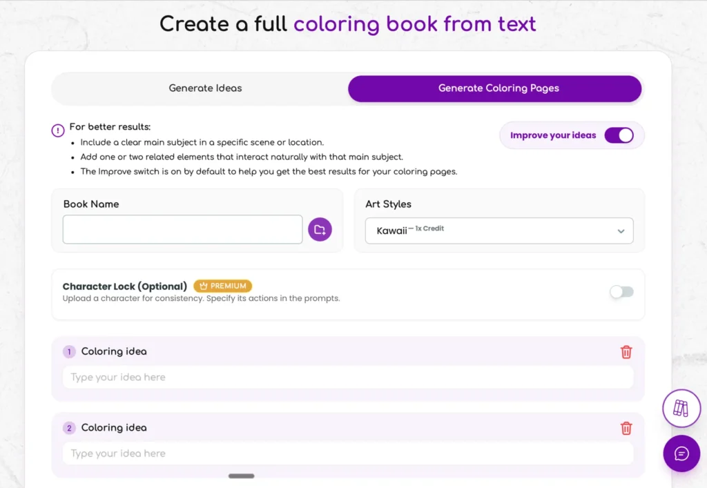 Turn your ideas into full printable coloring books in minutes and unlock a new world of creative possibilities.