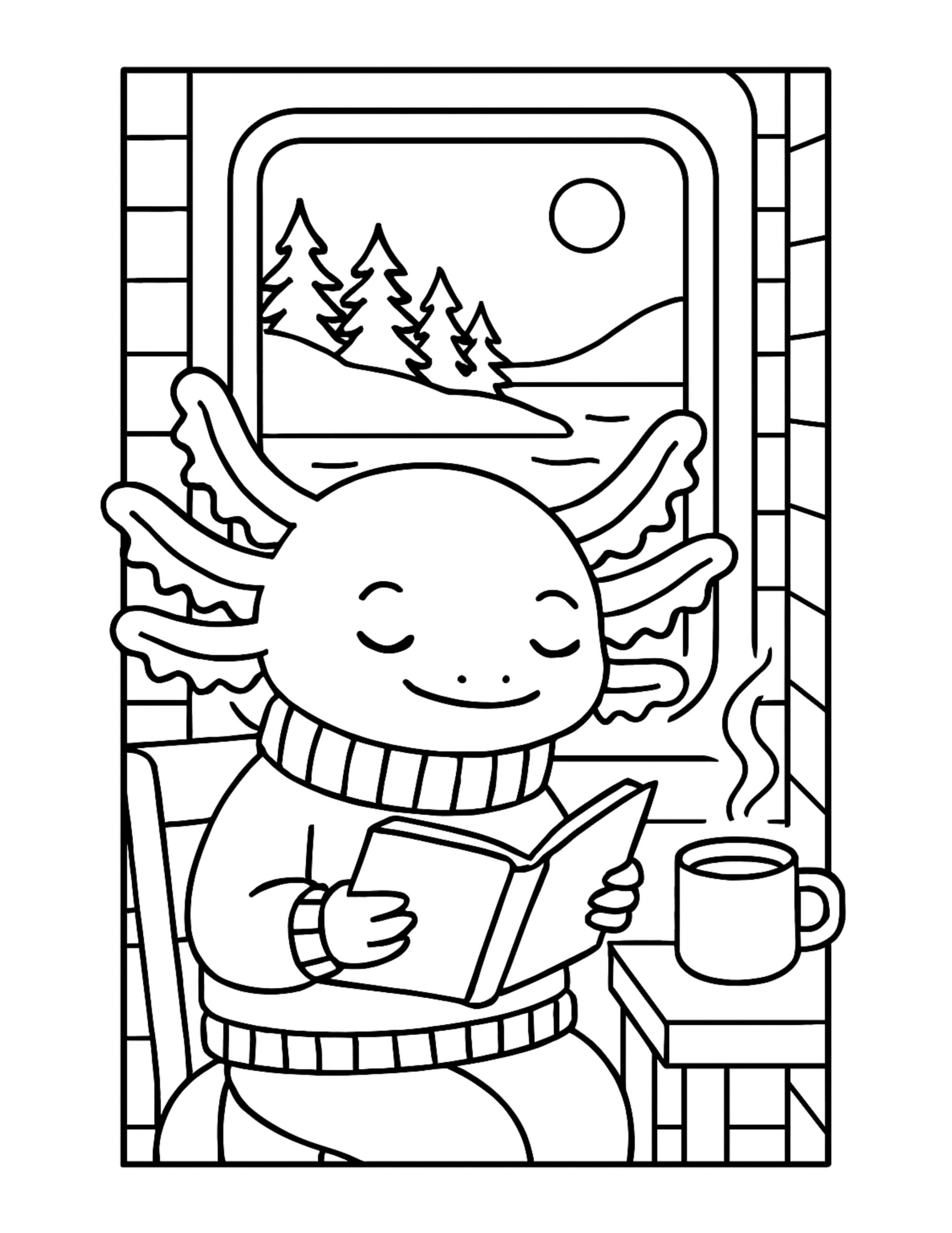 Axolotl Reading by the Window Coloring Page