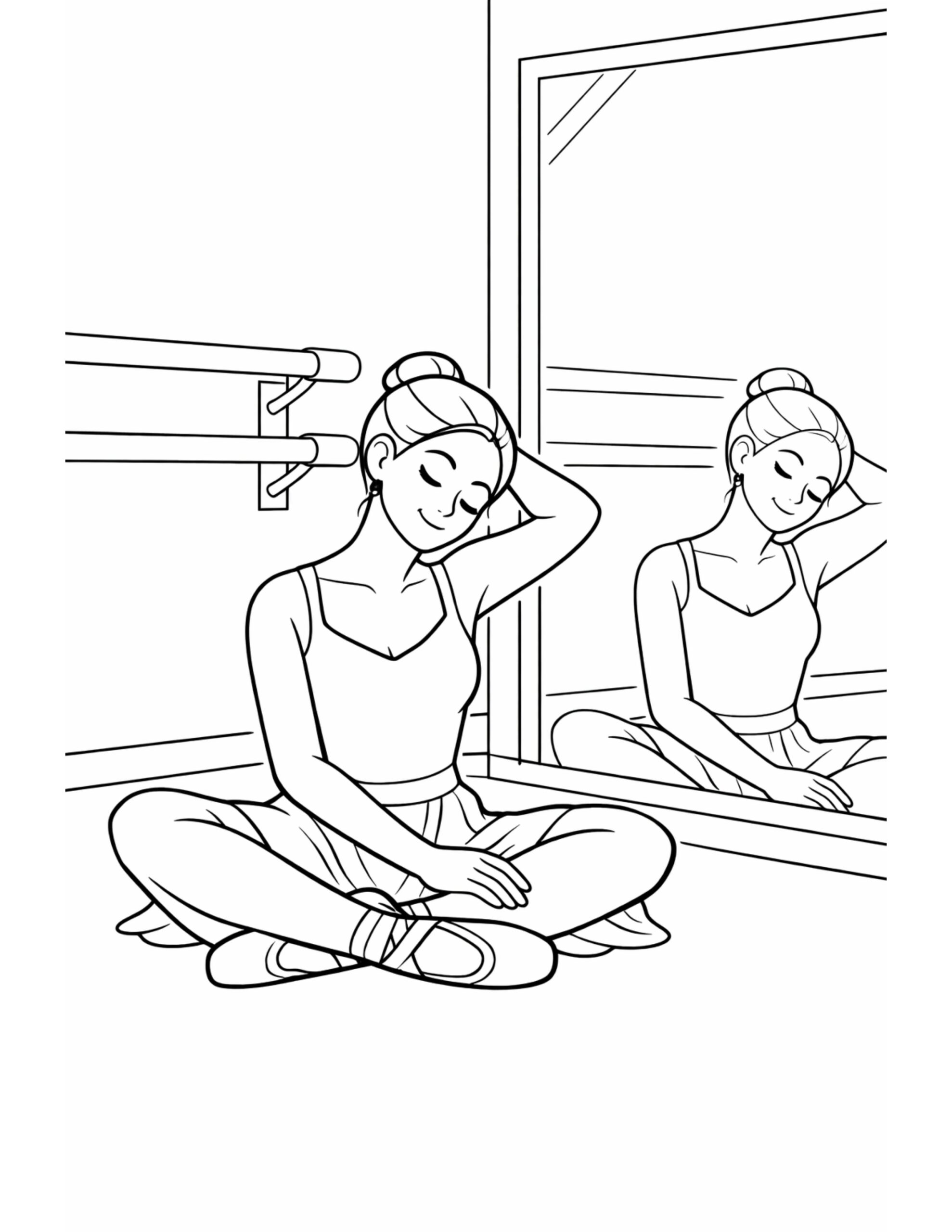Ballet stretch beside a studio mirror coloring page