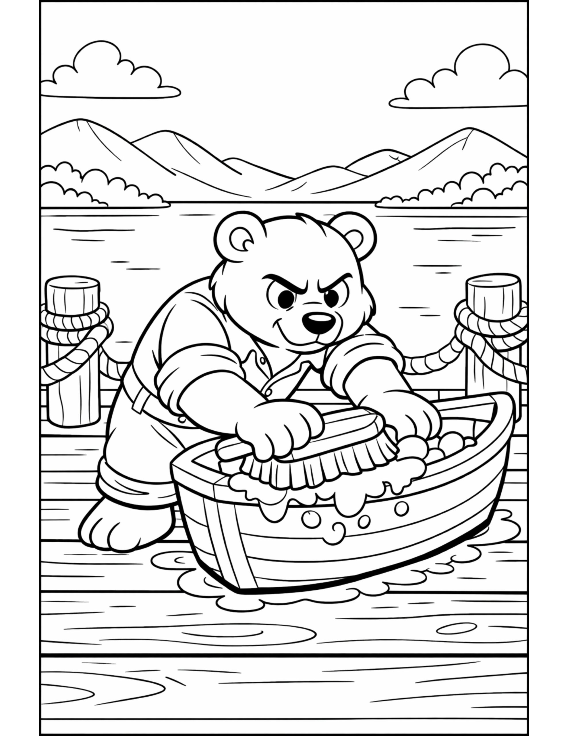 For this page, we entered the concept: “bear scrubbing a boat coloring page” on Colorin AI and generated a print ready coloring page in seconds.