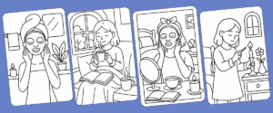 Self care coloring pages are trending because they capture calm routines people love. Cozy evenings, skincare rituals, tea moments, and that warm peaceful glow at home.