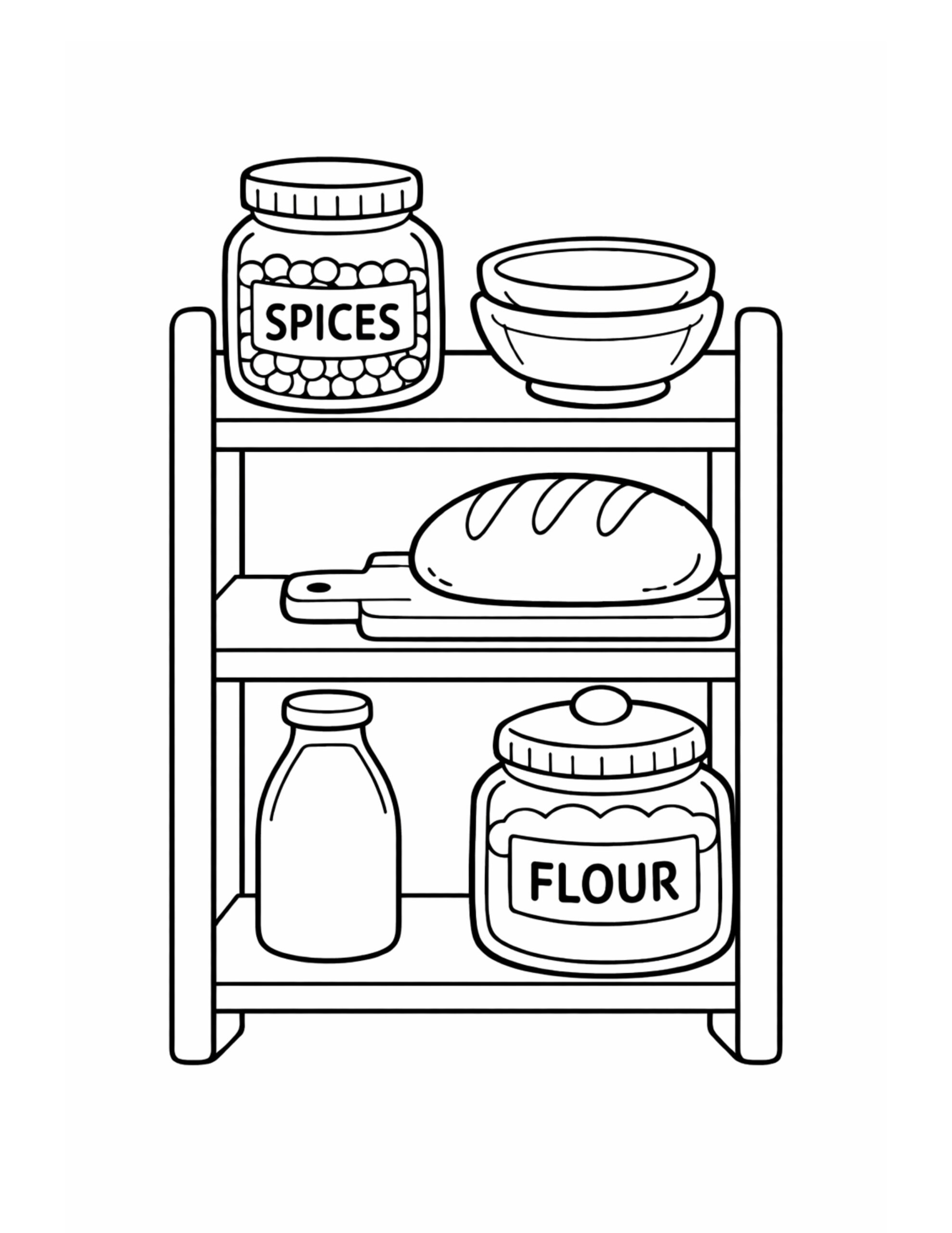 Bread and Pantry Shelf Coloring Page