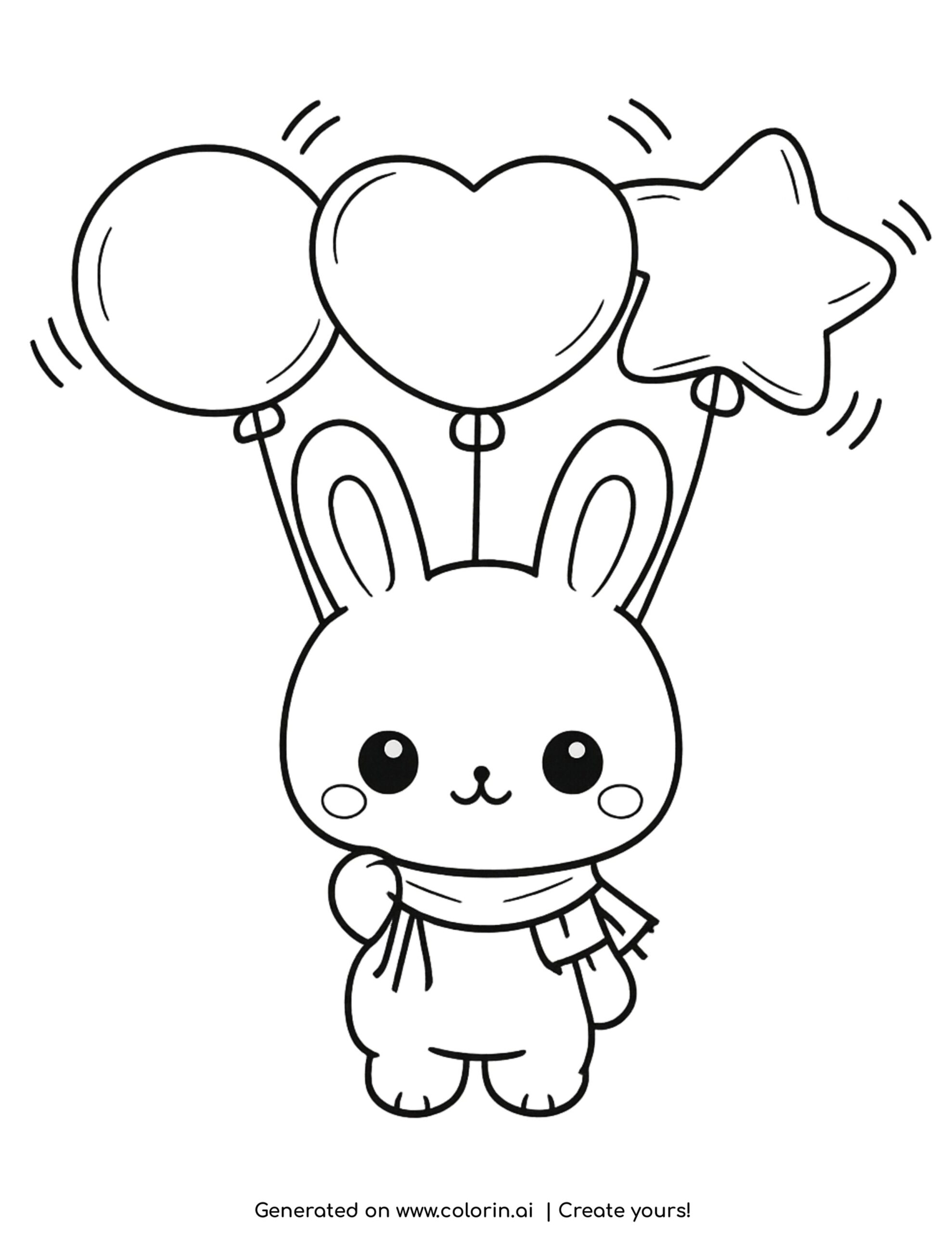 For this page, we entered the concept: bunny holding balloons coloring page on Colorin AI and generated a print ready coloring page in seconds.