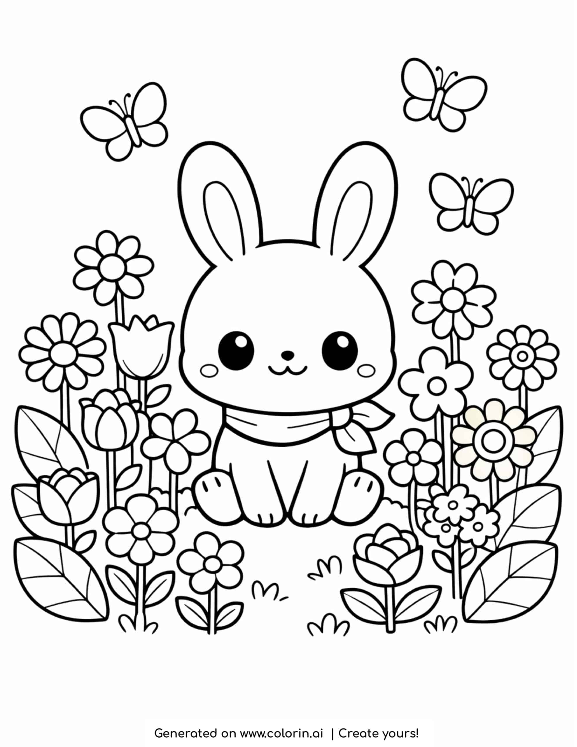 For this page, we entered the concept: bunny sitting in flower field coloring page on Colorin AI and generated a print ready coloring page in seconds.