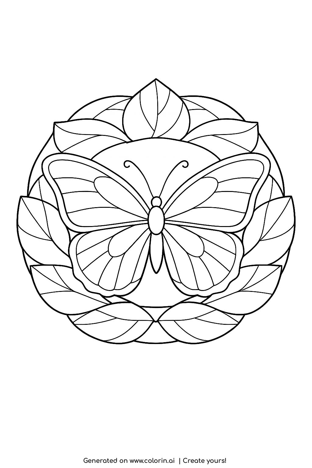 For this page, we entered the concept: butterfly inside leaf circle coloring page on Colorin AI and generated a print ready coloring page in seconds. Then we added organic floral details to make the scene feel more alive, all in just a few minutes. You can follow the same process to create your own coloring pages, or build full coloring books without any design skills. For more creative inspiration, explore our ideas on Pinterest.