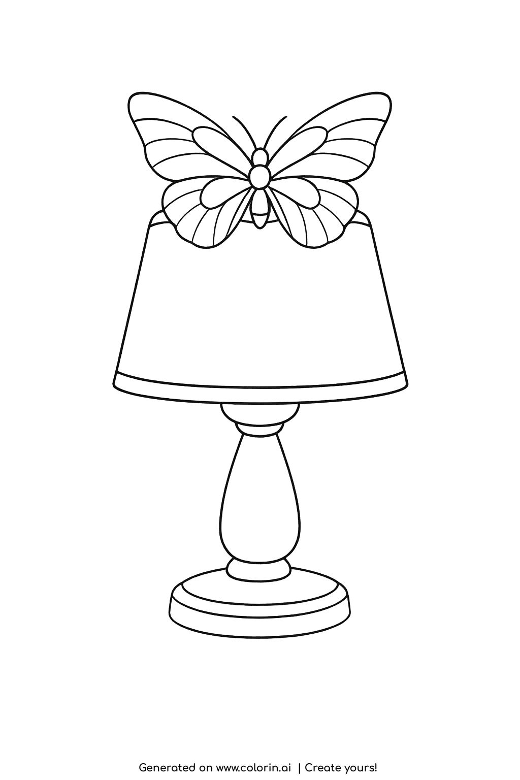 The butterfly on a table lamp coloring page features a large butterfly gently resting on top of a simple table lamp. The clean lines and centered composition create a calm and elegant scene that is easy and enjoyable to color. Because the background is empty, the main elements truly stand out and invite creative expression.