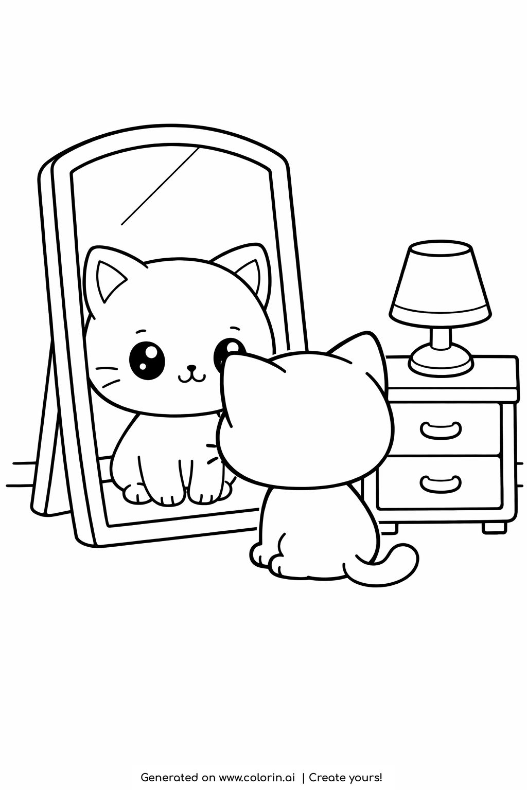 For this page, we entered the concept: cat looking at its reflection in mirror coloring page on Colorin AI and generated a print ready coloring page in seconds.