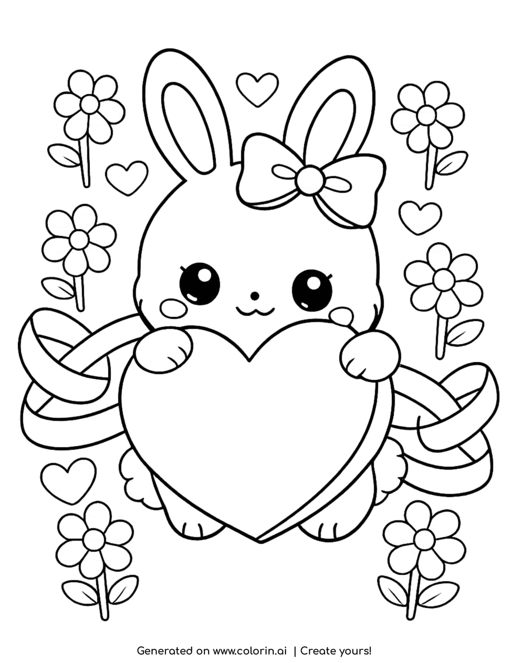 For this page, we entered the concept: cute bunny with heart coloring page on Colorin AI and generated a print ready coloring page in seconds.