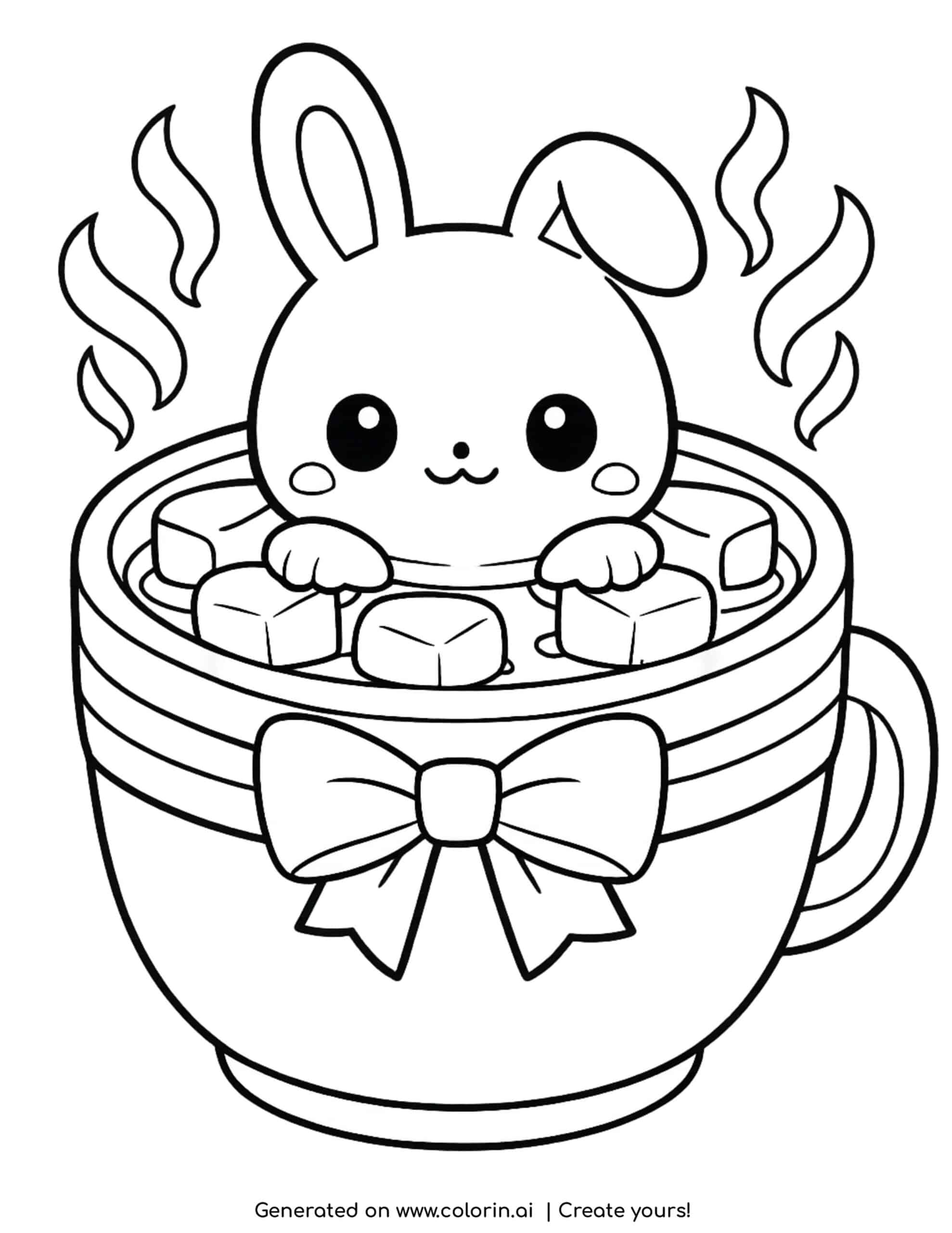 For this design, we used the idea: cute bunny in hot chocolate coloring page and generated it using Colorin AI. The result is a clean, simple illustration perfect for printing and coloring.