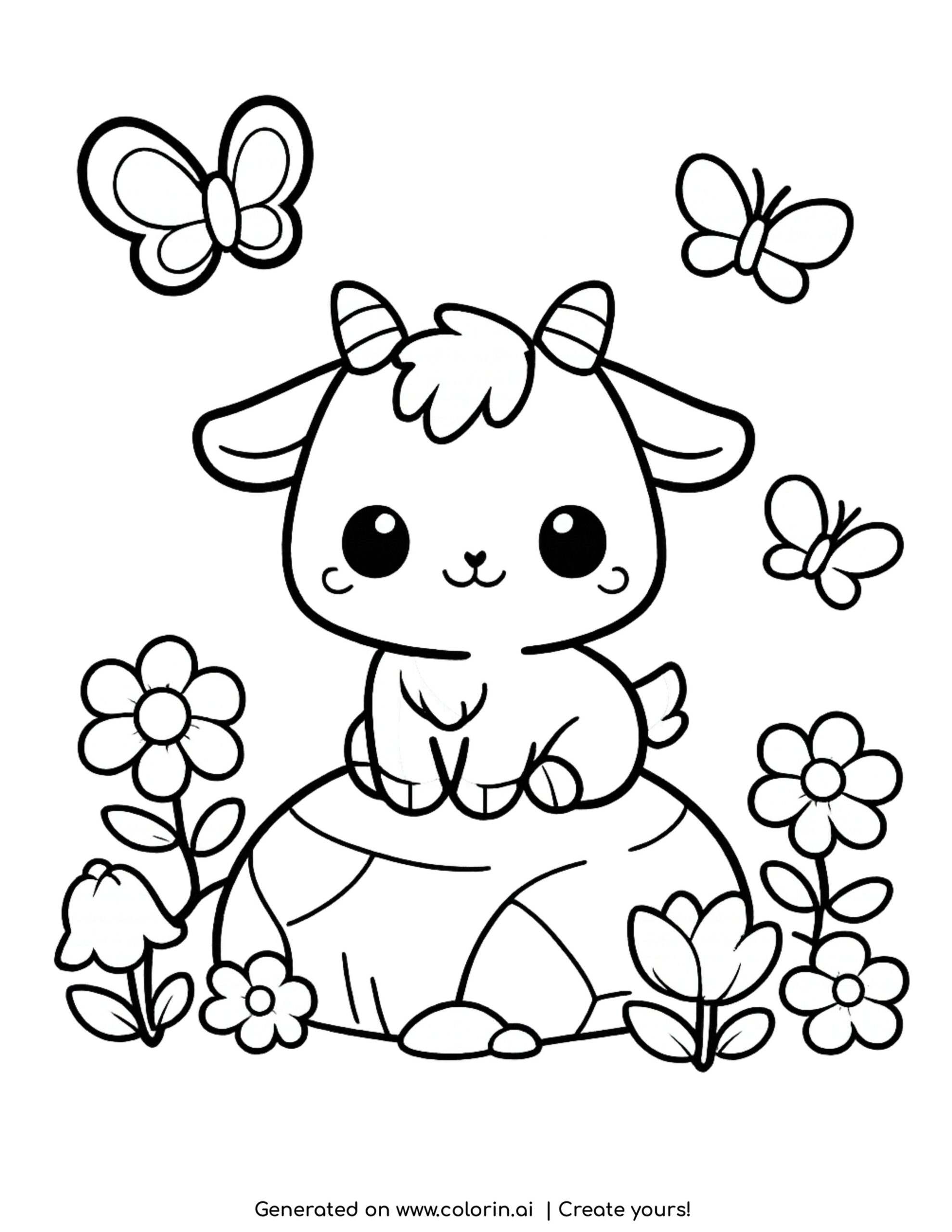 For this page, we entered the concept: cute goat sitting on rock coloring page on Colorin AI and generated a print ready coloring page in seconds.