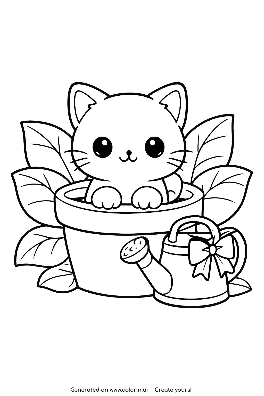 For this page, we entered the concept: cute kitten in flower pot coloring page on Colorin AI and generated a print ready coloring page in seconds.