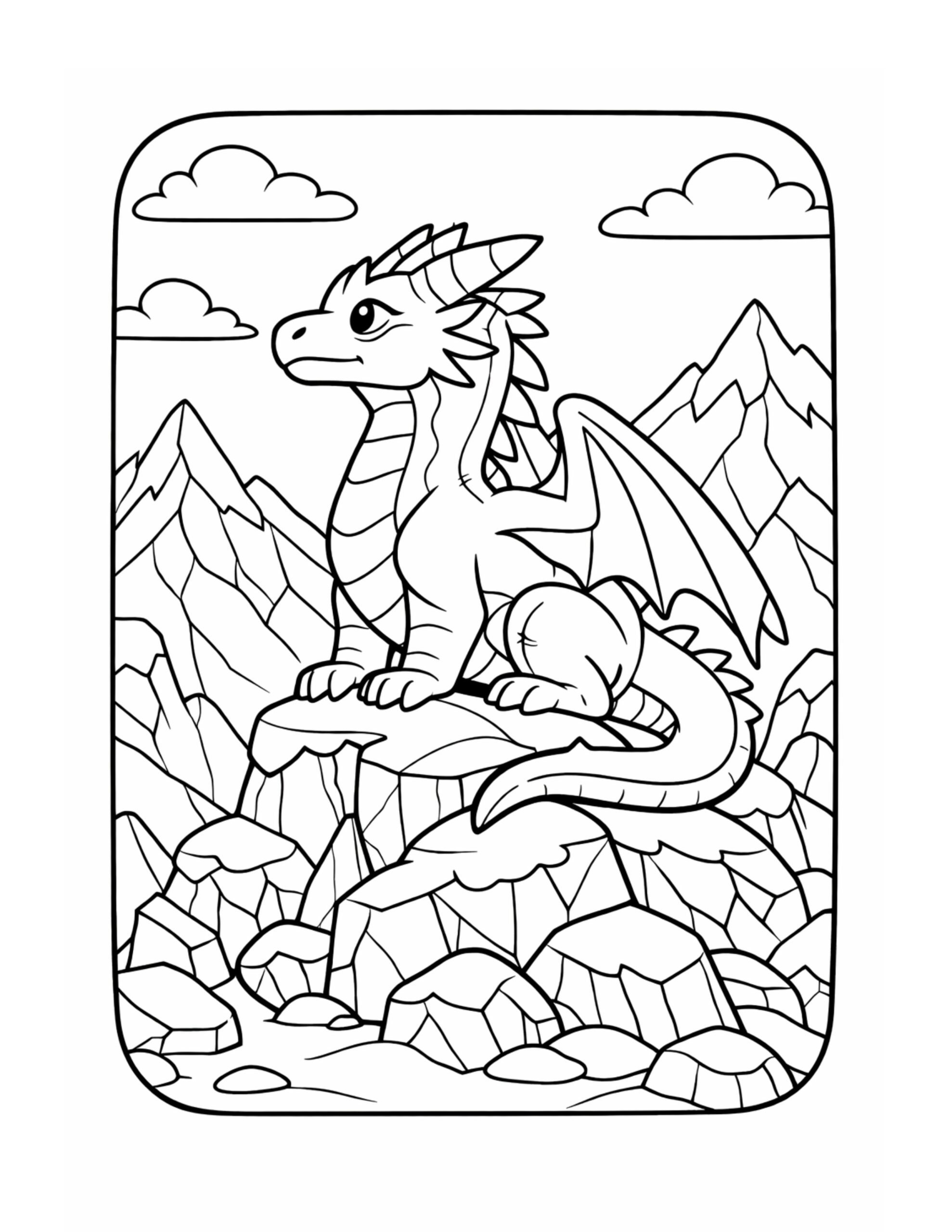 Dragon Perched on Mountain Rocks Coloring Page