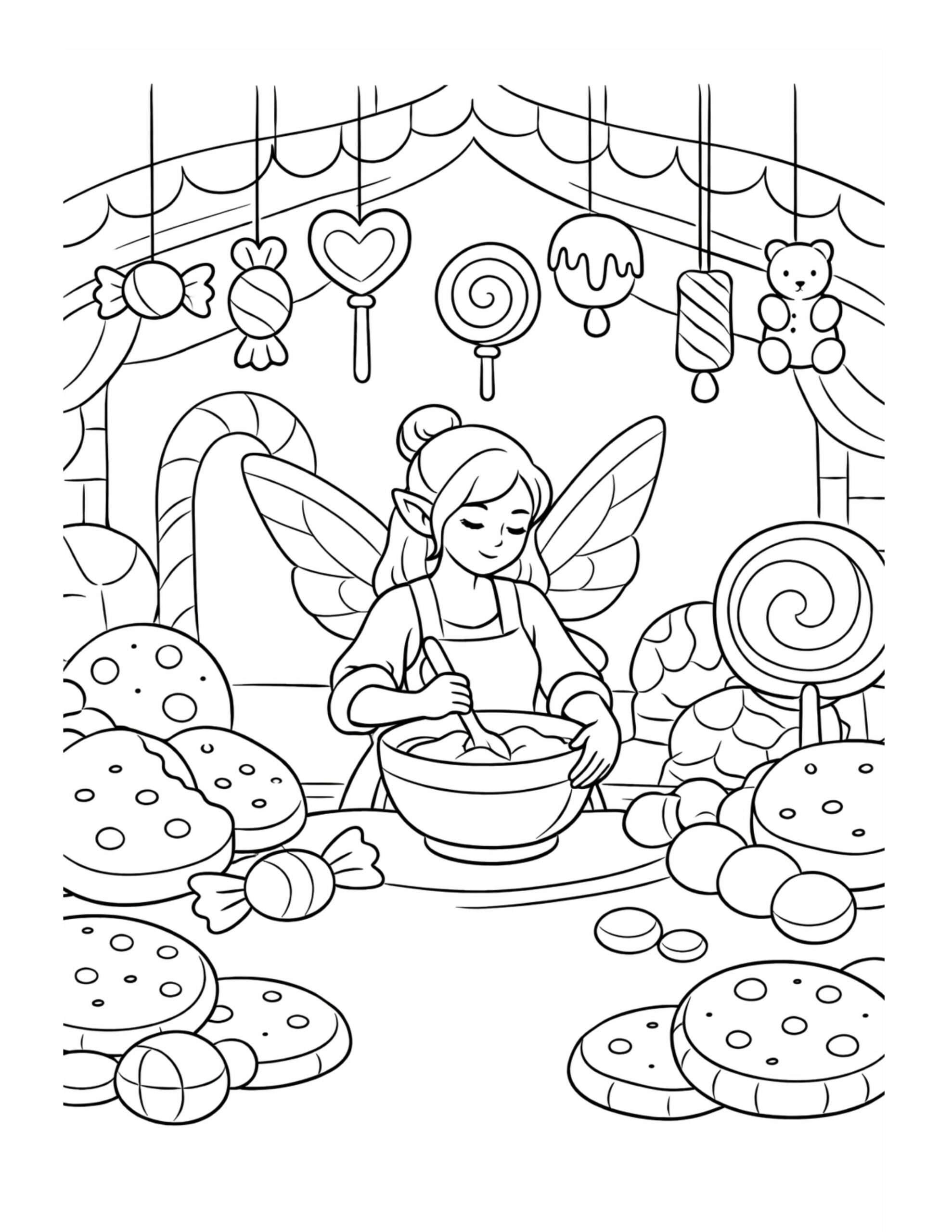 Fairy Baking Sweets Coloring Page