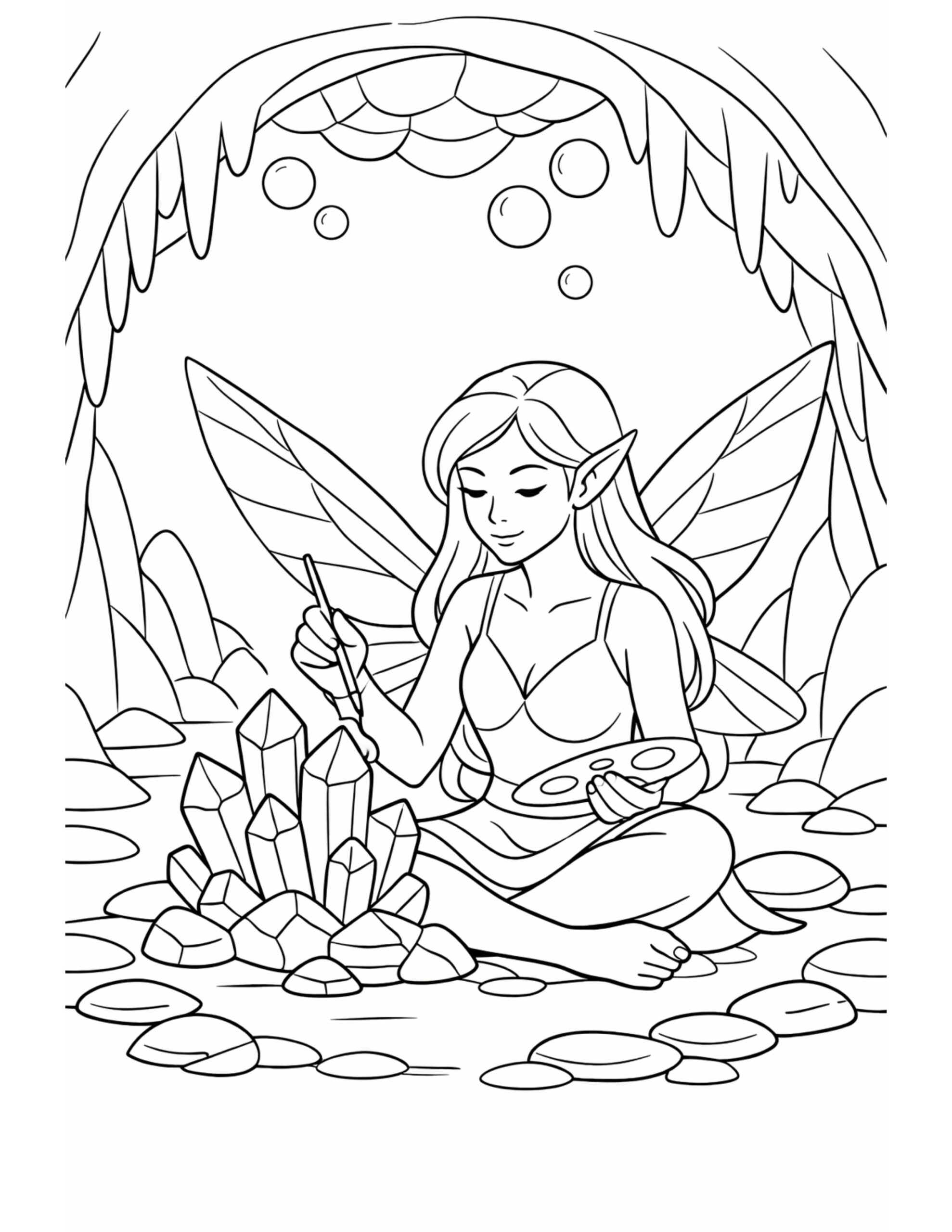 Fairy Painting Crystals Coloring Page