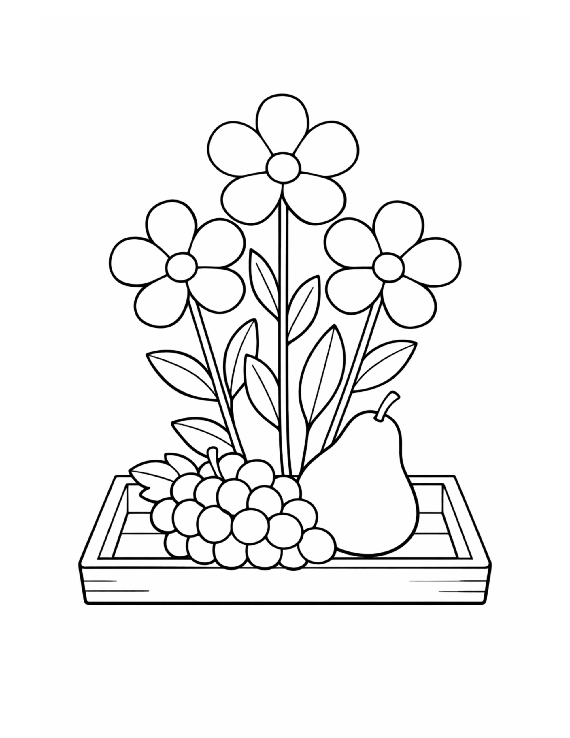 Flowers and Fruit Tray Coloring Page