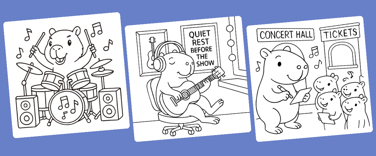 Free Printable Coloring Pages > Rockstar Capybara Coloring Book Free Rockstar Capybara Coloring Book This Rockstar Capybara Coloring Book brings pure music energy into a