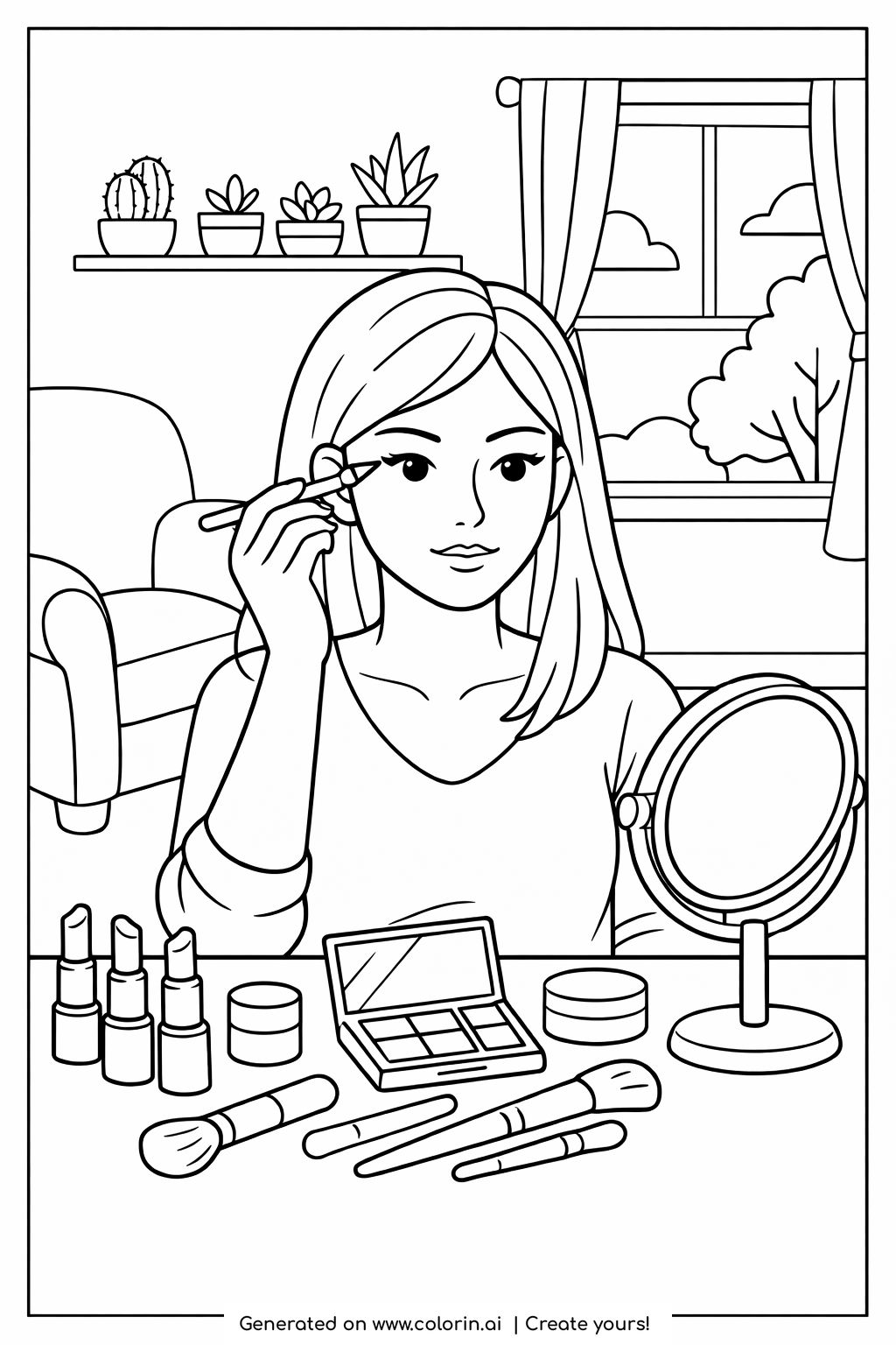 For this page, we entered the concept: girl applying makeup at vanity coloring page on Colorin AI and generated a print ready coloring page in seconds. Then we added soft and cozy details to make the scene feel more alive, all in just a few minutes. You can follow the same process to create your own coloring pages, or build full coloring books without any design skills. For more creative inspiration, you can also explore our ideas on Pinterest.