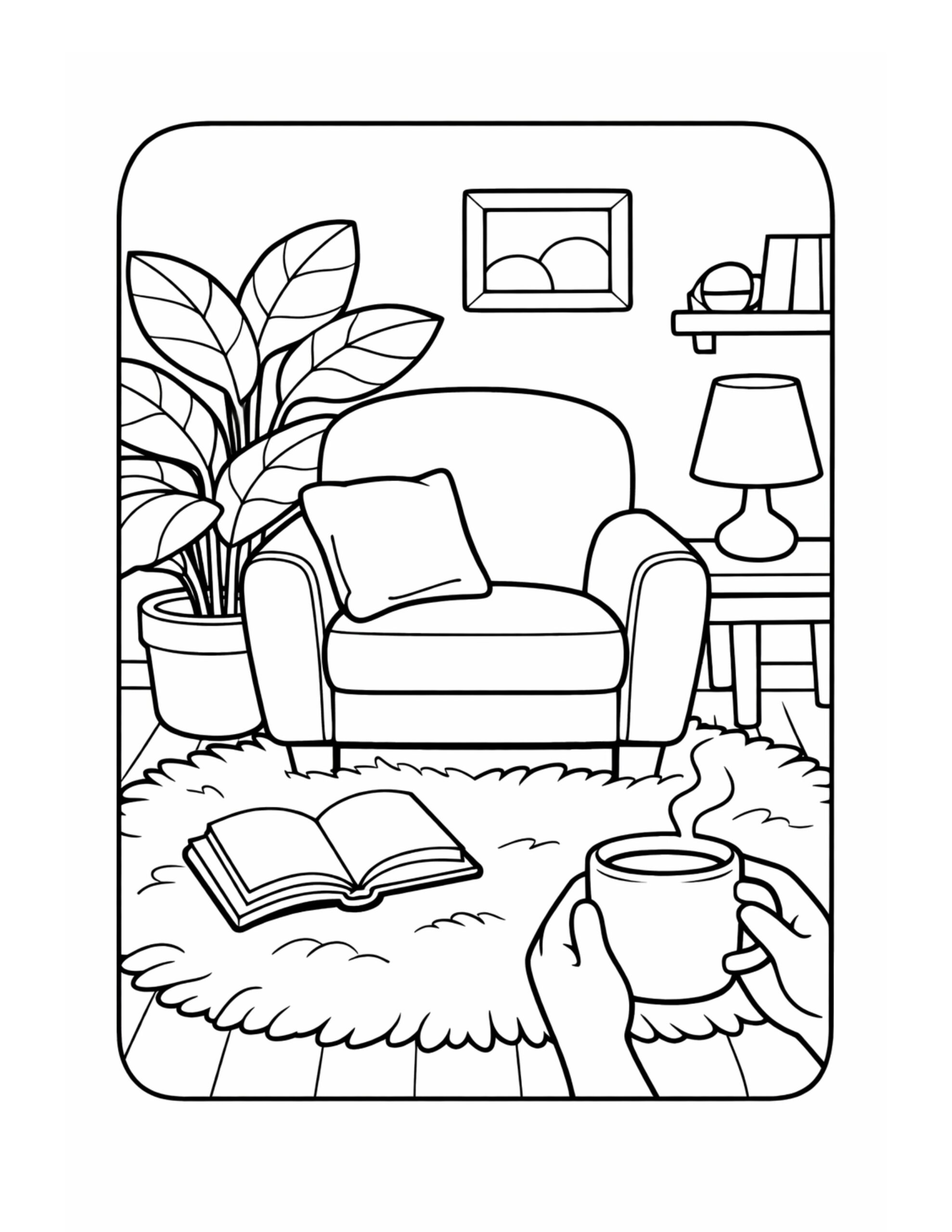 Cozy Living Room Coffee Moment Coloring Page