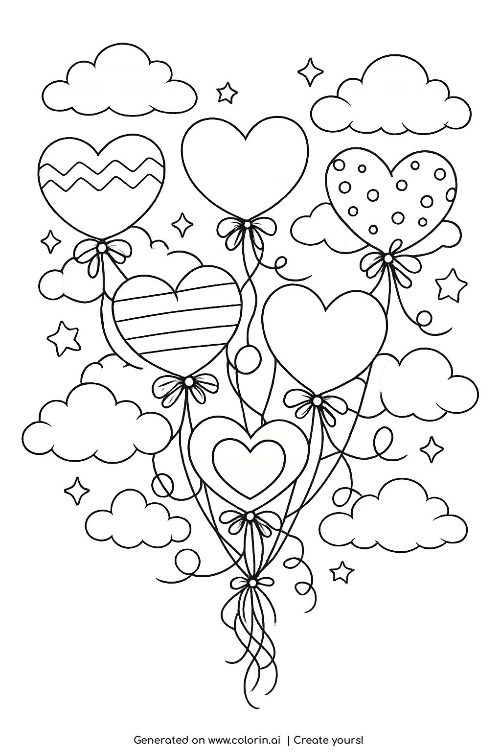 For this page, we entered the concept: heart balloons floating in the sky coloring page on Colorin AI and generated a print ready coloring page in seconds. Then we added heart balloons floating in the sky coloring page details to make the scene feel more alive, all in just a few minutes. You can follow the same process to create your own coloring pages, or build full coloring books without any design skills. For more creative inspiration, you can explore ideas on our Pinterest profile, where new designs are shared regularly.