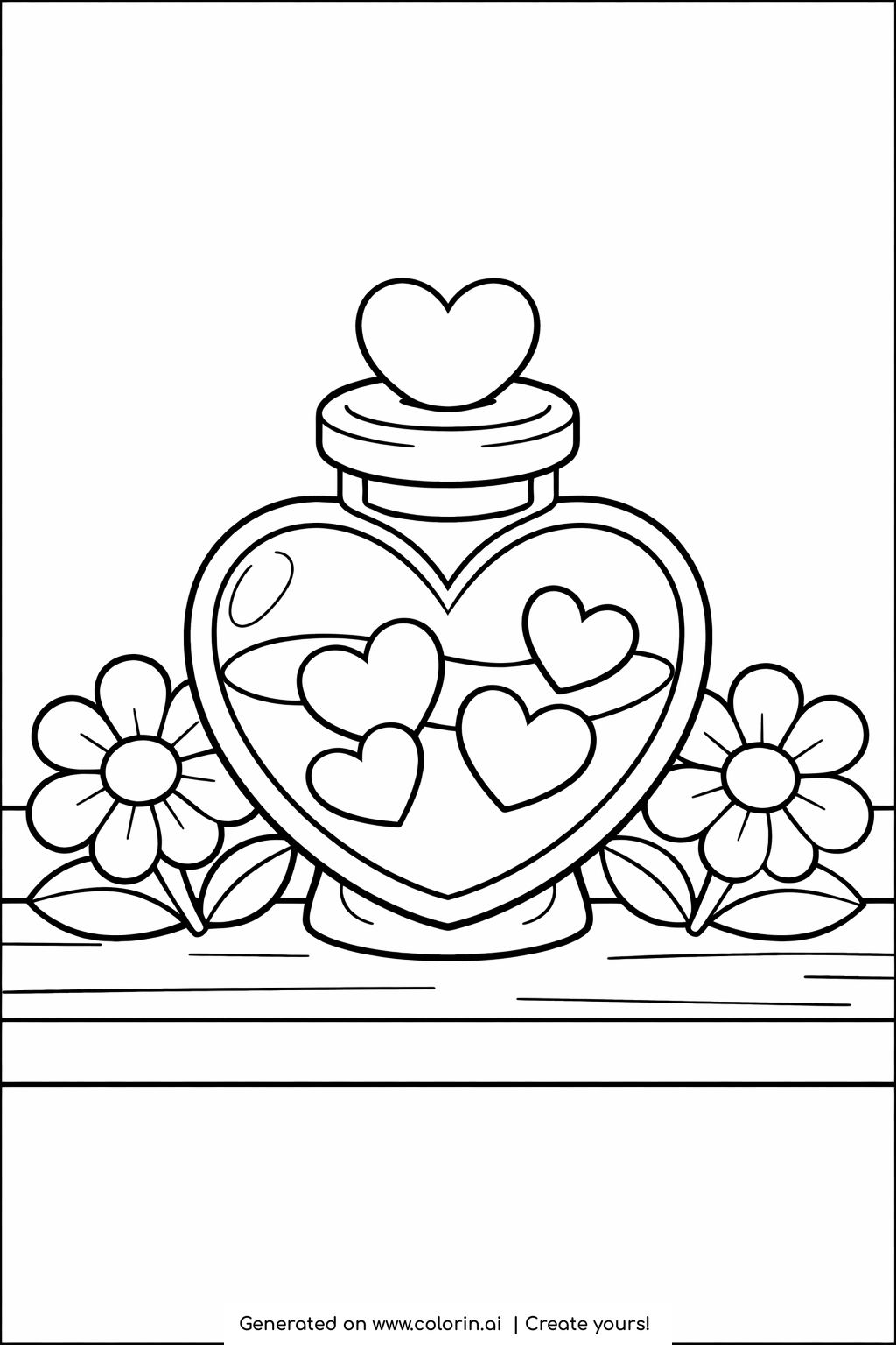 For this page, we entered the concept: heart shaped jar with hearts inside coloring page on Colorin AI and generated a print ready coloring page in seconds. Then we added sweet and romantic details to make the scene feel more alive, all in just a few minutes. You can follow the same process to create your own coloring pages, or build full coloring books without any design skills. For more creative inspiration, visit our Pinterest profile at https://www.pinterest.com/Colorin_ai/.