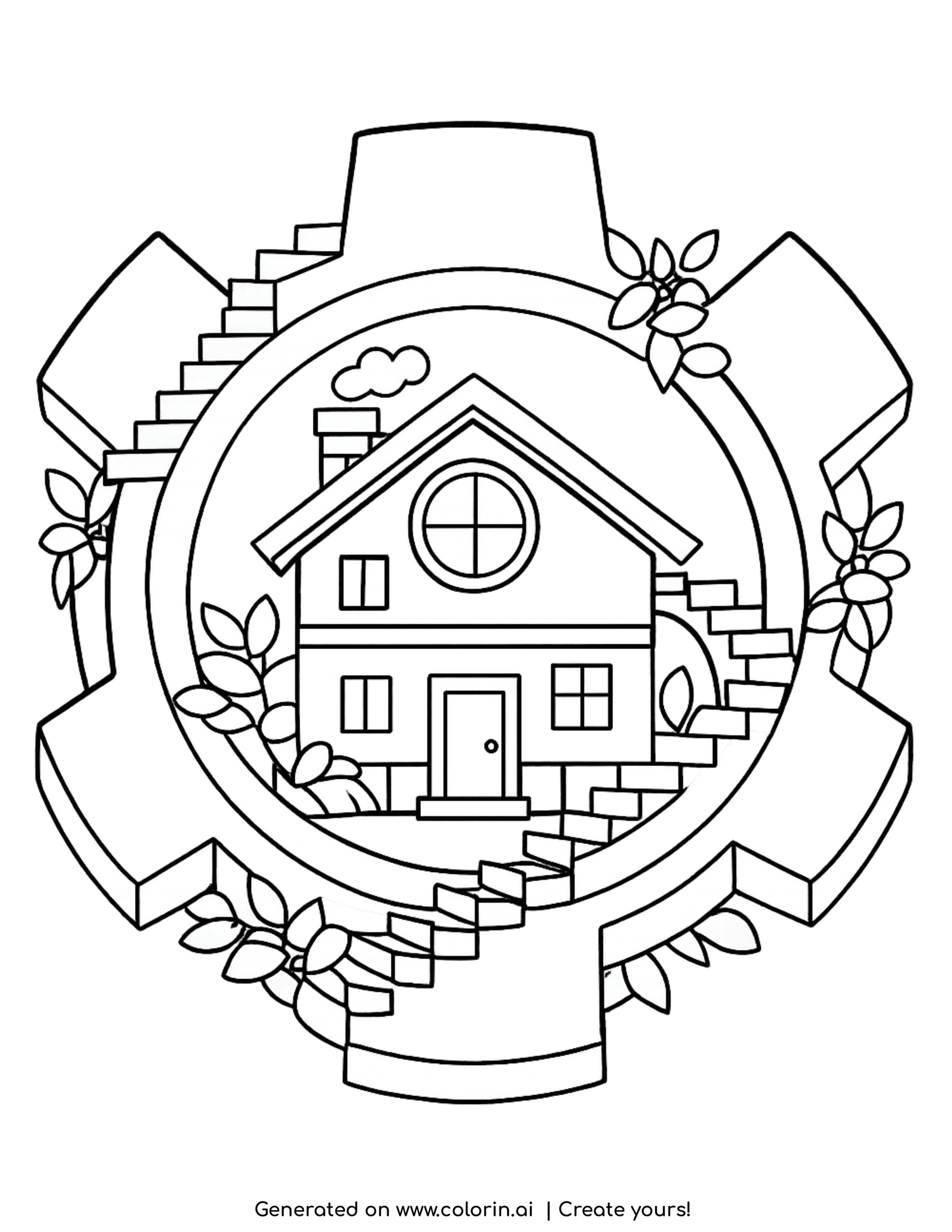 This coloring page encourages creative thinking by combining mechanical elements with a peaceful home setting. As you choose colors for both metal and nature, you expand your imagination and artistic flexibility. Moreover, focusing on the intricate gear shapes improves concentration and attention to detail.