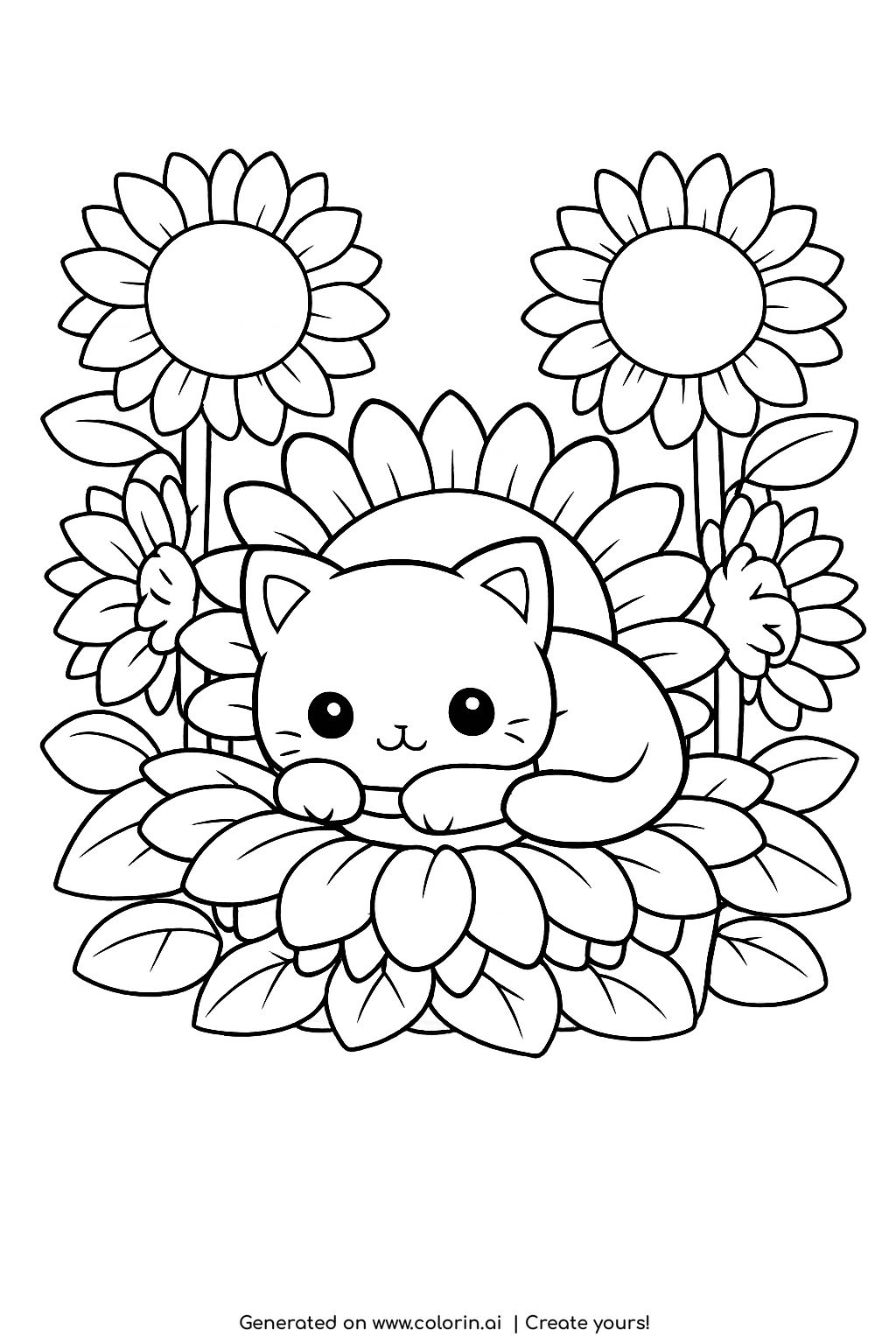 To begin with, try using warm yellows and golden tones for the sunflower petals to make them bright and cheerful. You can add soft browns or light oranges in the centers to create depth. Meanwhile, the kitten can be colored in gentle shades like cream, light gray, or soft orange for a cozy look.