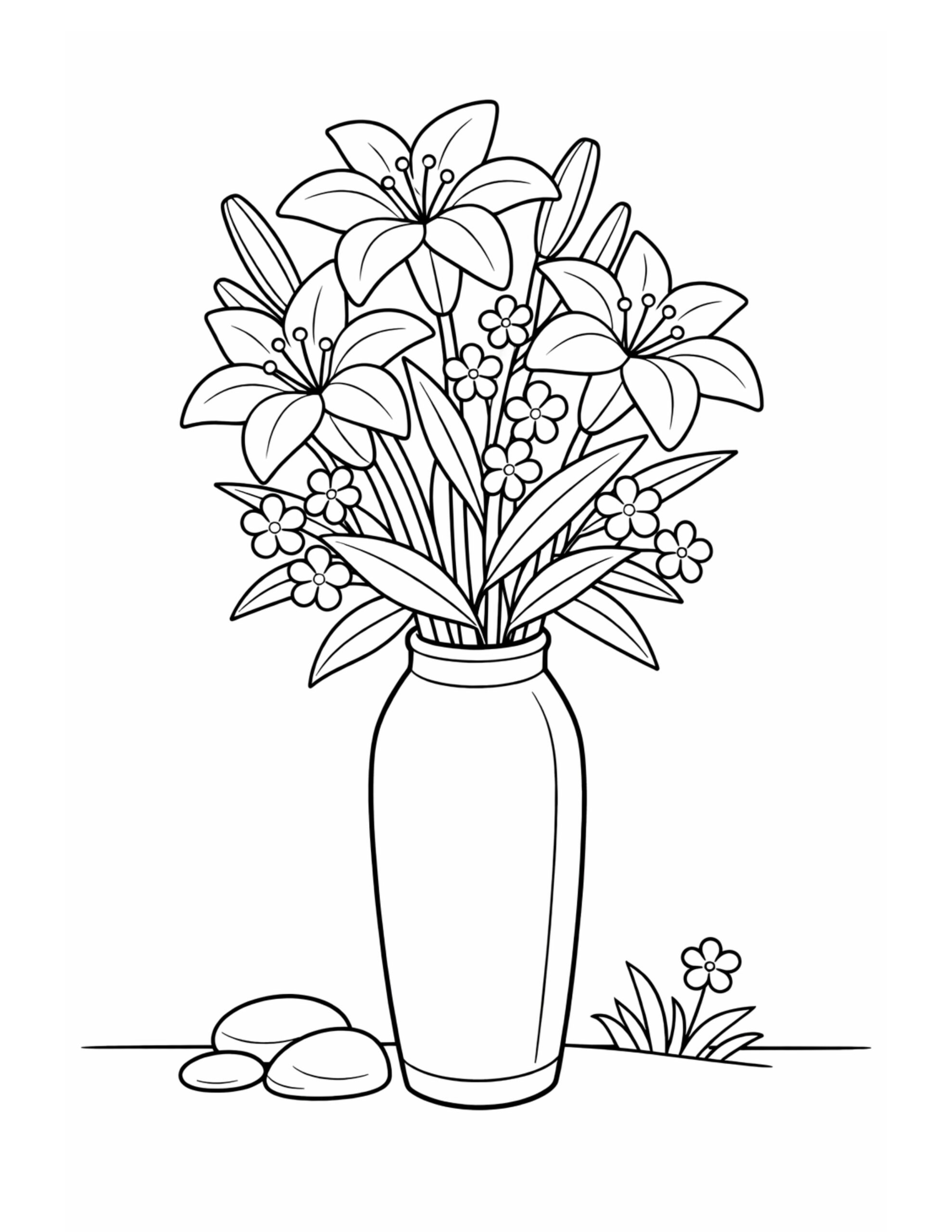 lilies in tall vase coloring page