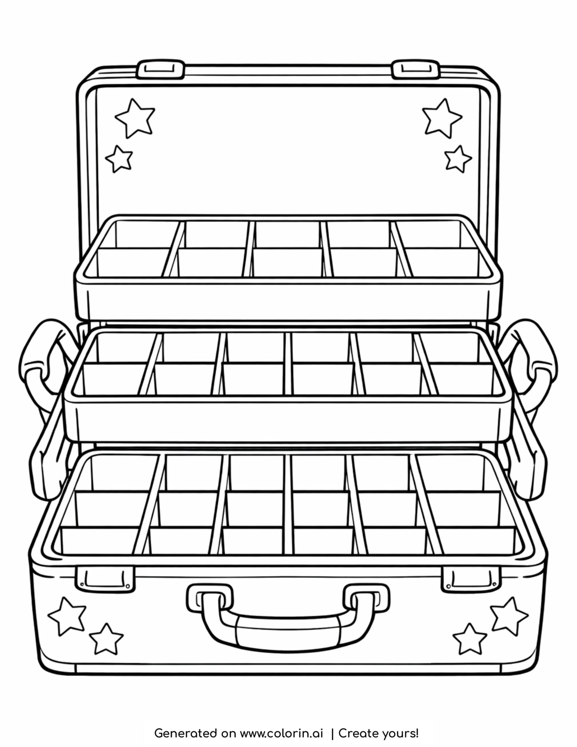 For this page, we entered the concept: makeup case with compartments open coloring page on Colorin AI and generated a print ready coloring page in seconds.