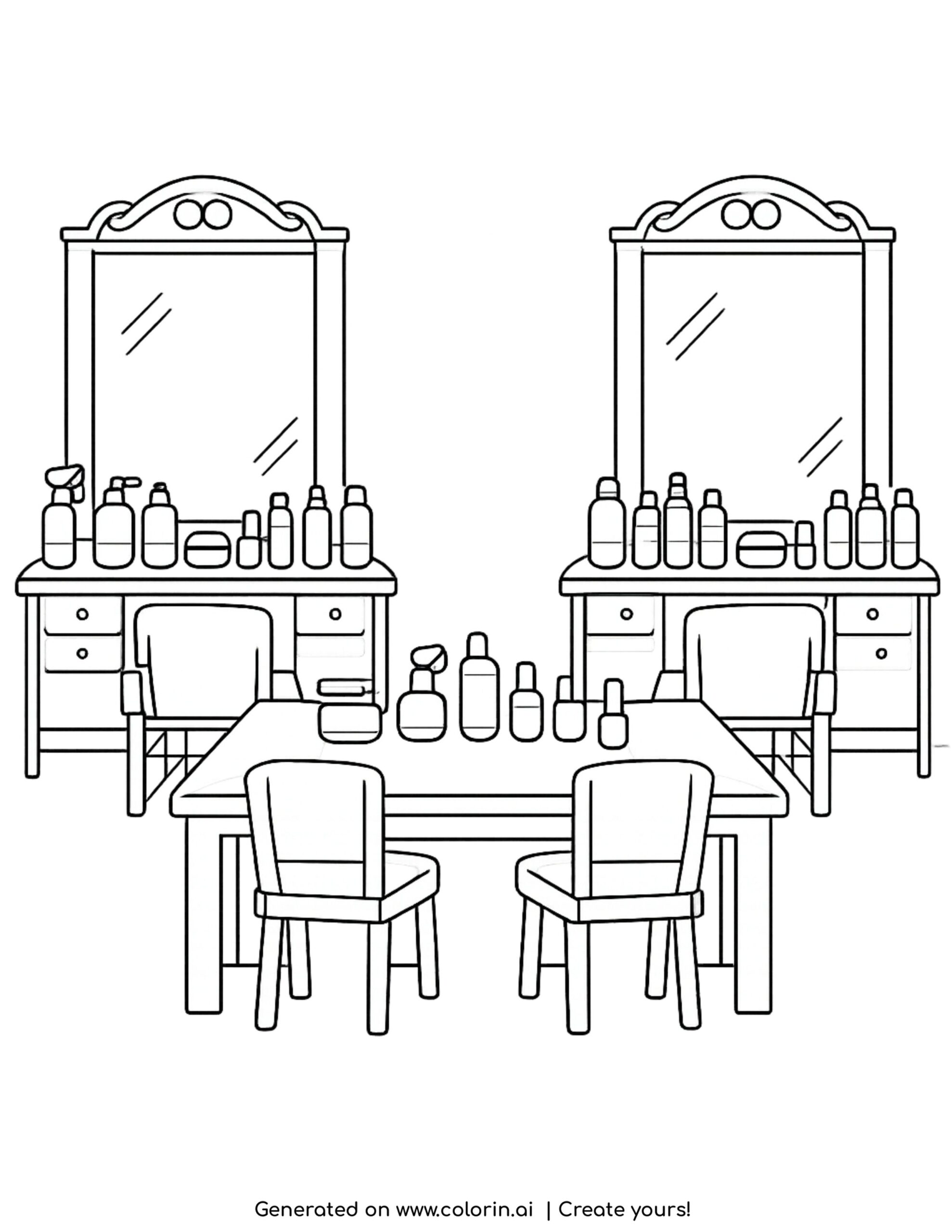 For this page, we entered the concept: makeup studio with two mirrors coloring page on Colorin AI and generated a print ready coloring page in seconds. Then we added clean and organized details to make the scene feel more alive, all in just a few minutes. You can follow the same process to create your own coloring pages, or build full coloring books without any design skills. For more creative inspiration, visit our Pinterest profile.