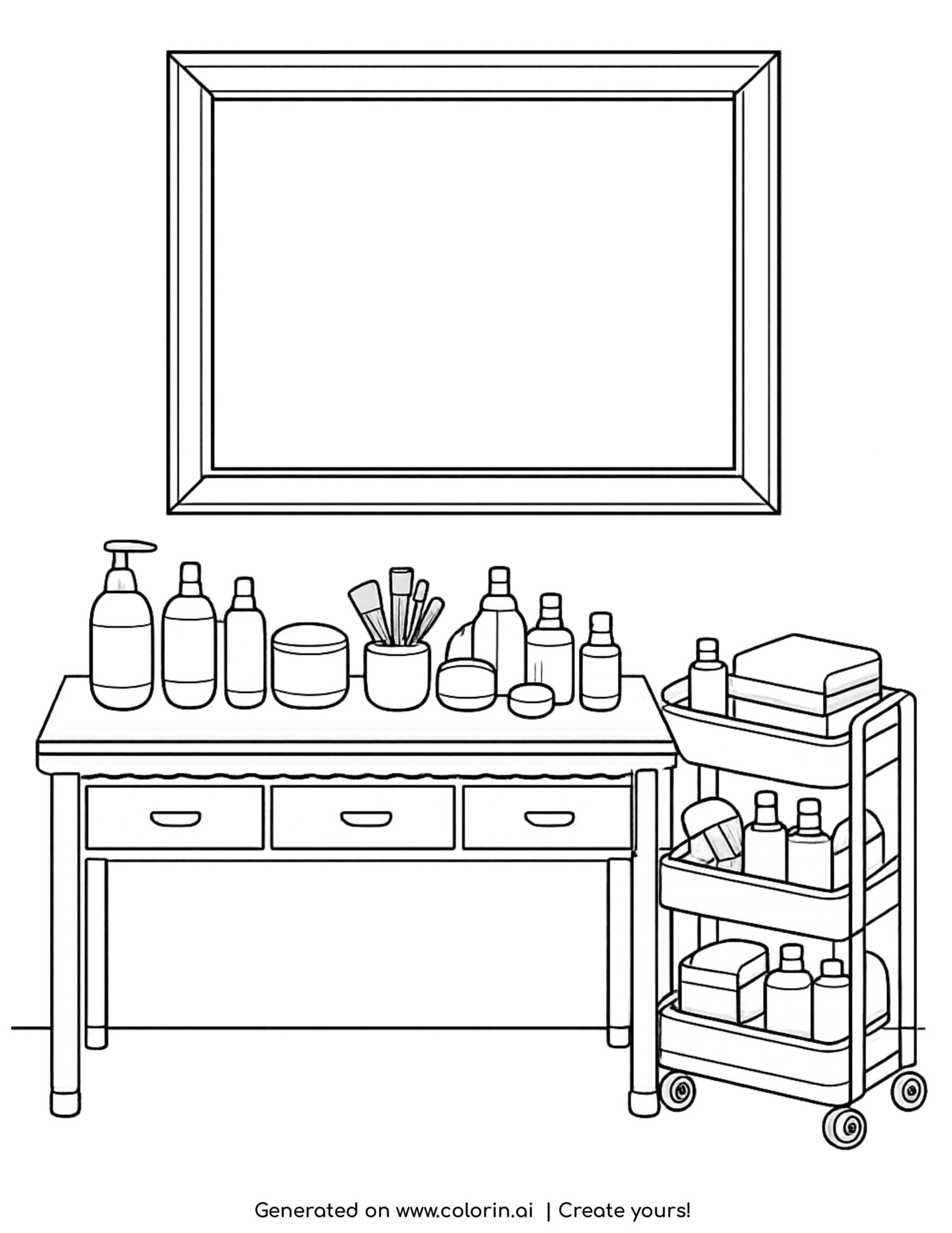 For this page, we entered the concept: makeup vanity with storage cart coloring page on Colorin AI and generated a print ready coloring page in seconds. Then we added organized and functional details to make the scene feel more alive, all in just a few minutes. You can follow the same process to create your own coloring pages, or build full coloring books without any design skills. For more creative inspiration, visit our Pinterest profile.