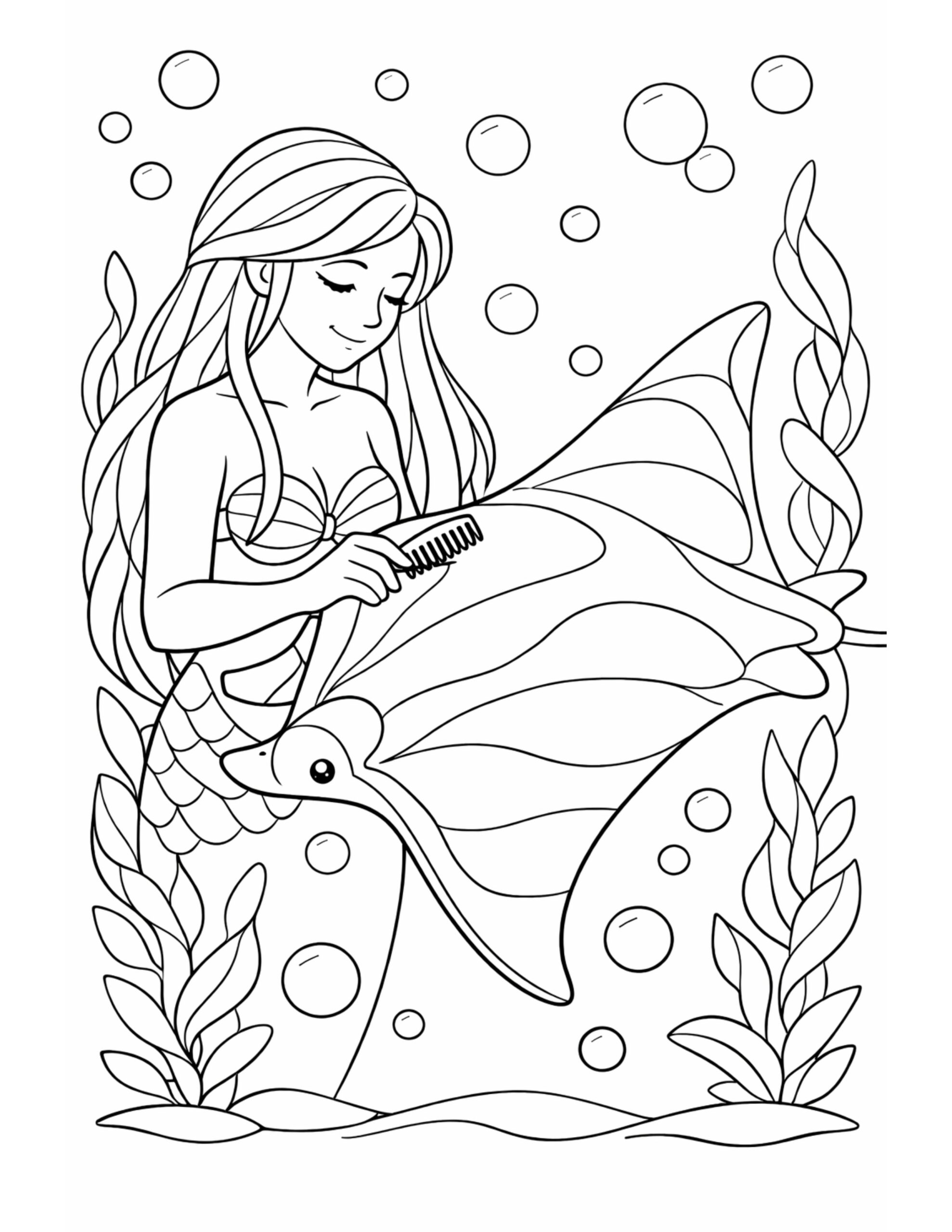 Mermaid Combing Her Hair Coloring Page