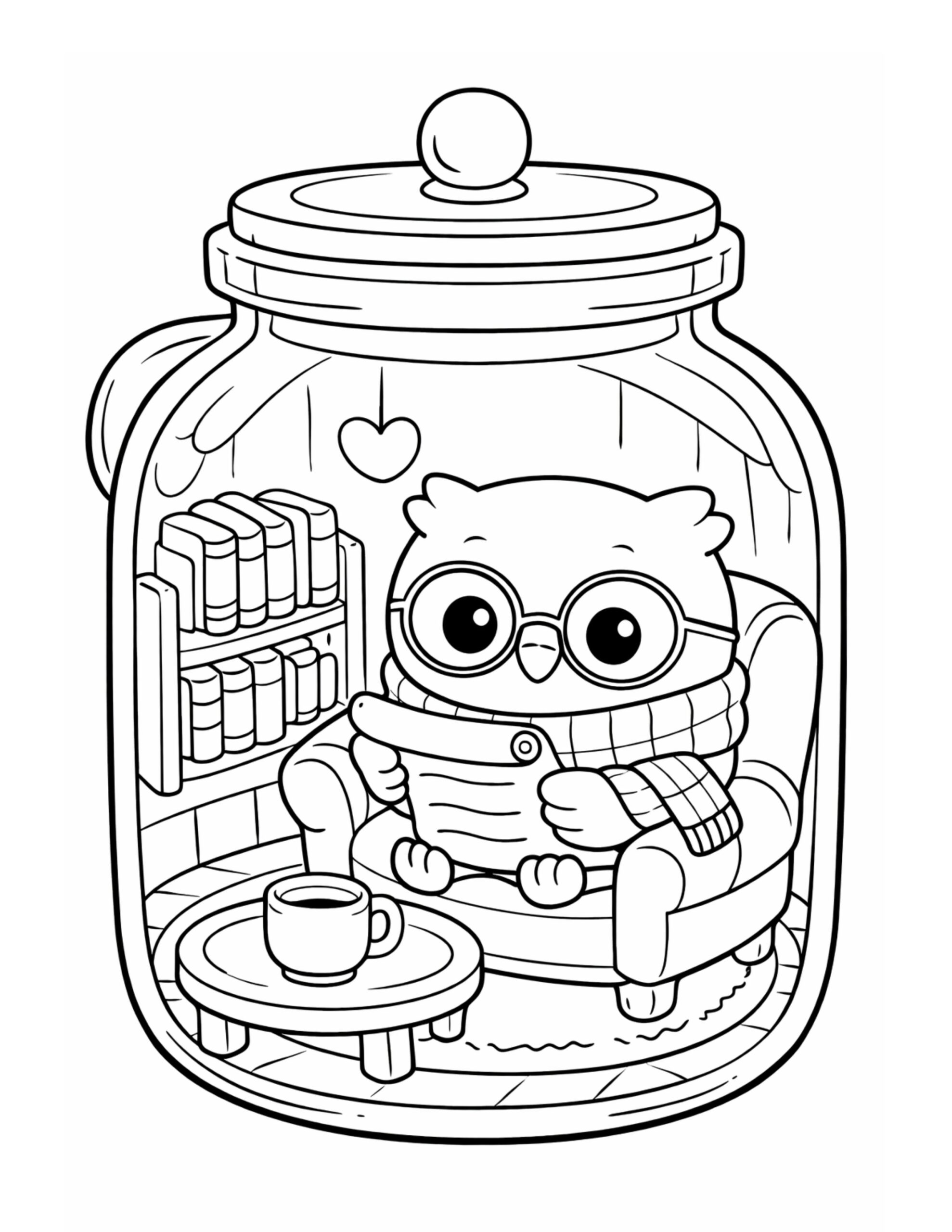 Because the scene has clear sections, it helps build concentration without feeling too busy. As you color the small bookshelf lines and the owl’s glasses, you naturally practice fine motor control.