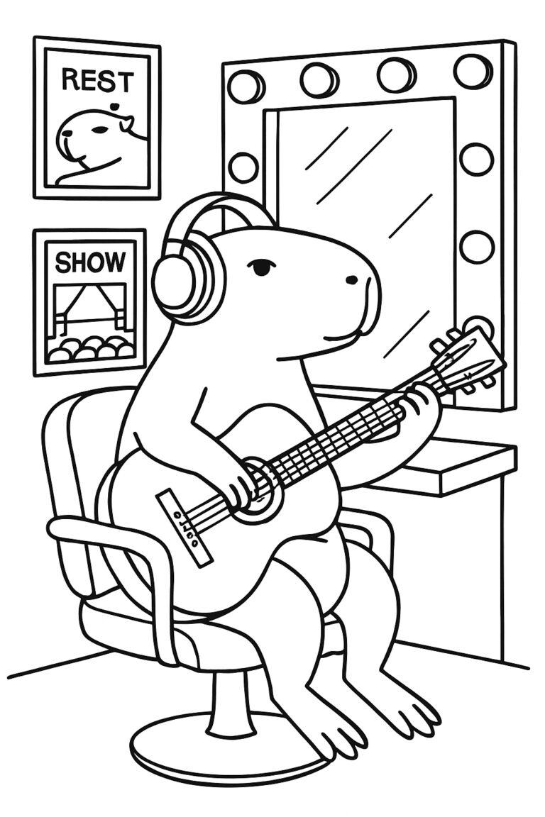 This design works well for kids, teens, and adults who want a straightforward but satisfying page. Younger children can focus on coloring the large bear shape, the big drum surfaces, and the speaker circles. Older kids and teens may enjoy adding depth to the drum shells, creating metallic effects on cymbals, or using gradients in the speaker cones. Adults can keep it relaxing with smooth color blocks, or make it more detailed with careful shading and texture.