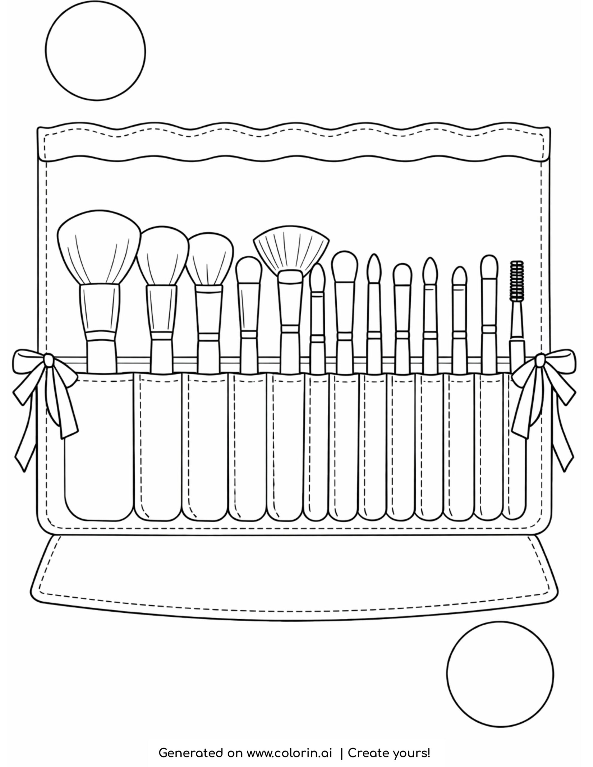 For this page, we entered the concept: roll up makeup brush set coloring page on Colorin AI and generated a print ready coloring page in seconds.