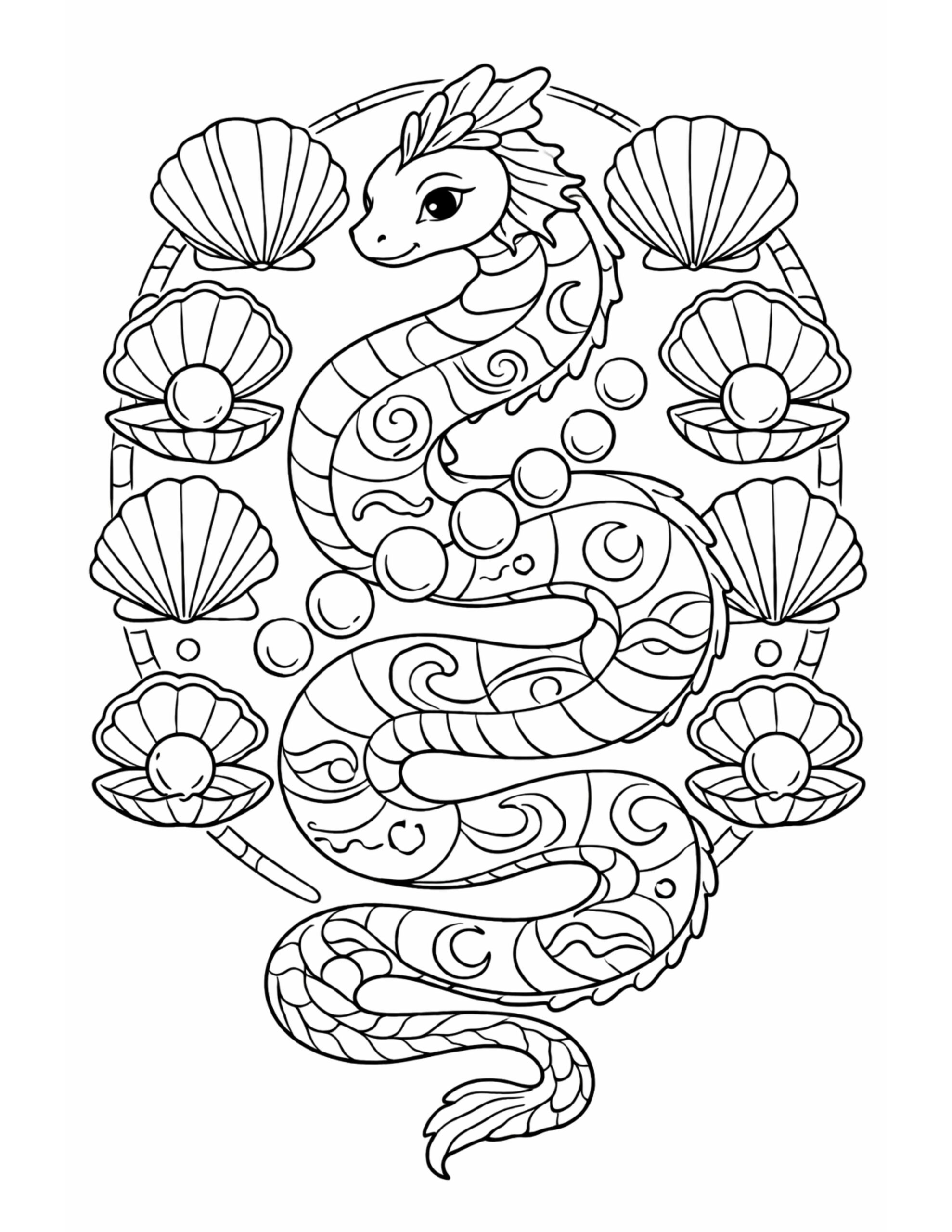 Sea Dragon With Pearl Shells Coloring Sheet