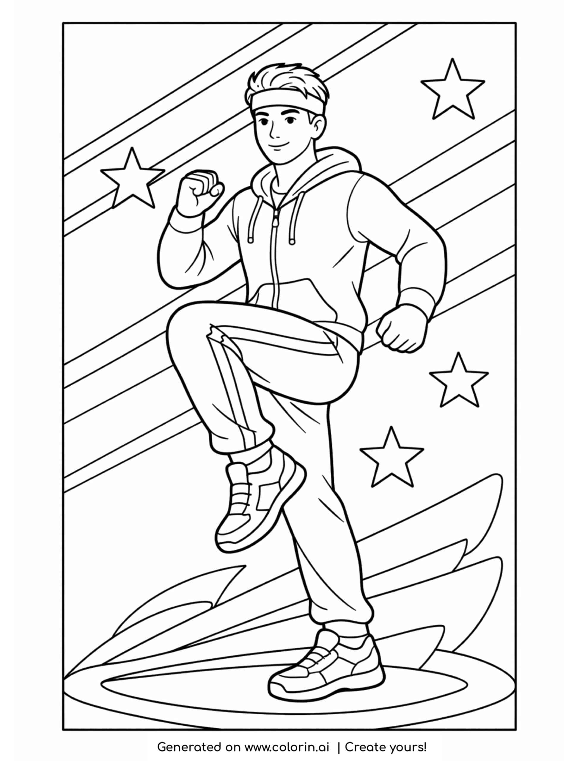 Additionally, the background lines can be filled with gradients or alternating shades to create a sense of motion. The stars can be colored in yellow or metallic tones for a playful touch. You can also experiment with shading on the clothing folds to give the figure more depth and realism.