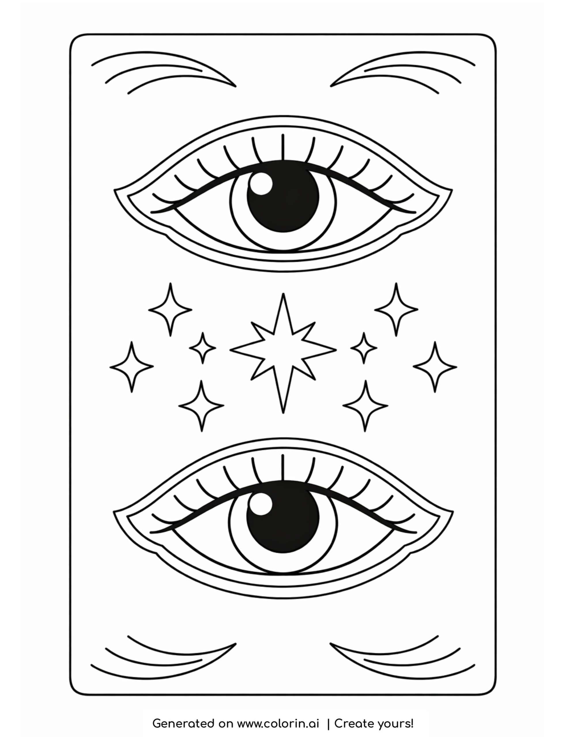 For this page, we entered the concept: two eyes with stars between coloring page on Colorin AI and generated a print ready coloring page in seconds.