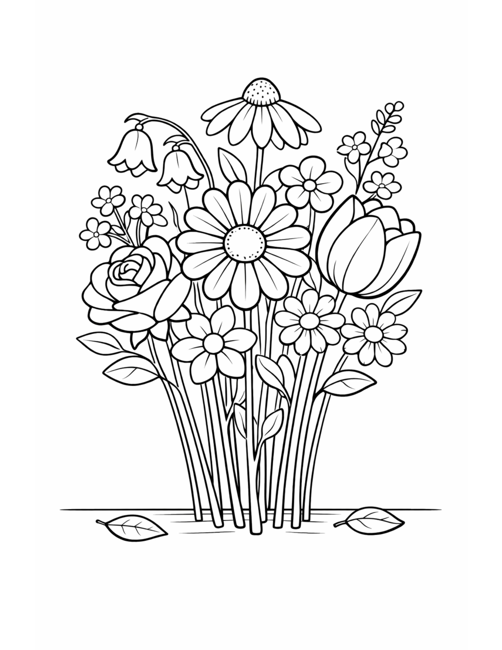 Mixed Wildflower Bouquet Coloring Page